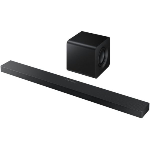 Сбалансированный объемный звук независимо от расположения Основные особенности Универсальная конфигурация Расположение, подходящее именно вам Благодаря встроенному гироскопическому датчику, этот саундбар может определять свое расположение и автоматически оптимизировать звуковое поле. Независимо от того, установлен ли саундбар на стене или на столе, вы неизменно услышите качественный звук Dolby Atmos Настоящий 3.1.2-канальный объемный звук Завораживающий звук, оживляющий мир развлечений Именно звук саундбара, оснащенного 3 фронтальными динамиками, 1 сабвуфером и 2 динамиками, направленными вверх, придает реалистичность происходящему на экране. Кроме того, комплект поставки включает компактный беспроводной сабвуфер для мощных и динамичных басов. Универсальная конфигурация Динамики саундбара расположены таким образом, что могут играть роль как фронтальных, так и верхних каналов, автоматически изменяя конфигурацию каналов в зависимости от положения саундбара. Новый сабвуфер Оцените насыщенные басы, излучаемые нашим новым сабвуфером компактного размера. Он гармонично впишется в интерьер вашего дома, нисколько не теряя в мощности. Беспроводной Dolby Atmos Беспроводная передача звука Dolby Atmos между ТВ Samsung и саундбаром Окружите себя 3D-звуком непревзойденного качества. Благодаря технологии беспроводной передачи звука Dolby Atmos, встроенной в ваш саундбар, вы сможете отчетливо слышать каждый звук над собой и вокруг себя как в настоящем кинотеатре. Технология Q-Symphony Гармоничное звучание телевизора и саундбара Технология Q-Symphony позволяет искусственному интеллекту разделять звуковую дорожку на составляющие её голоса и фоновые звуки и распределять их по оптимальным каналам. Телевизор и саундбар звучат как единая аудиосистема с четкими диалогами и захватывающим объемным звуком. Технология SpaceFit Sound Pro Калибровка звука специально под условия вашего пространства прослушивания Наслаждайтесь потрясающим звуком, оптимизированным специально для вашего интерьера. Саундбар анализирует пространство помещения и соответствующим образом настраивает звук, добиваясь повышенной четкости, иммерсивности и сбалансированных басов. Адаптивный звук Оптимизированный звук для каждой сцены Наилучшие впечатления от прослушивания каждой сцены. Ваш саундбар распознает тип контента, который вы смотрите, и автоматически адаптирует настройки звука для получения четких голосов и детализированных звуков. Игровой режим Game Pro Станьте частью игры с динамичным звуком Погрузитесь в игру с мощным 3D-звуком. Саундбар автоматически настраивает звук для игр, когда обнаруживает игровую консоль, подключенную к телевизору Samsung. Режим Moderate Bass Наслаждайтесь насыщенным басом даже ночью Ваш саундбар спроектирован таким образом, чтобы достоверно воспроизводить насыщенные басы даже при выключенном сабвуфере. Поддержка беспроводной тыловой акустики Расширьте акустические и функциональные возможности вашего саундбара Подключите беспроводные тыловые динамики* к вашему саундбару и превратите его в многоканальную акустическую систему для создания объемного звука как в кинотеатре. Кроме того, вам станут доступны специальные режимы звучания Private Rear Sound и Sound Grouping. HDMI eARC Безупречное качество звука Ваш саундбар поддерживает HDMI eARC - всё что надо для передачи звука высоч